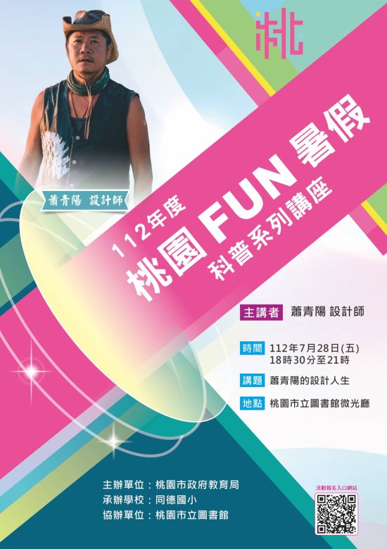 一、 為迎接暑假,本局於桃園市立圖書館總館舉辦旨揭系列科普講座,講座內容多元,歡迎民眾、學生及家長一同參與,了解關於科技、太空與設計等的科普知識。